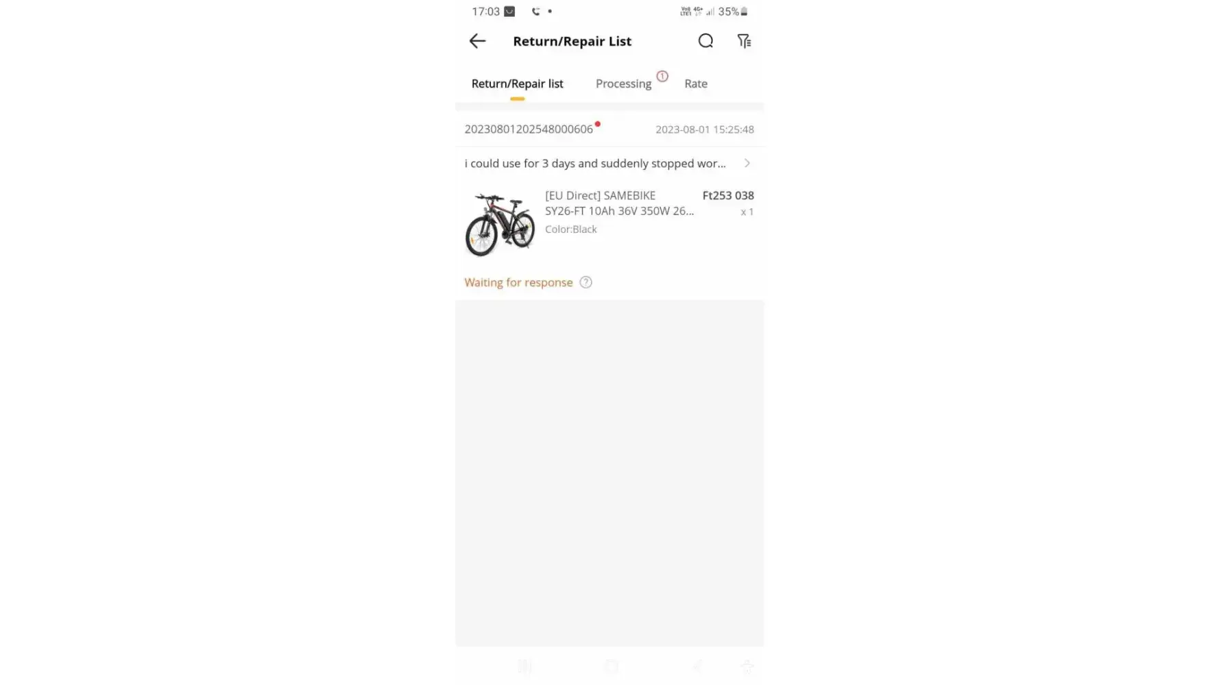 I have a problem with the order [protected] I got it and then after 3 days the motor stopped working.. Just to be sure I went to the mechanics he said it is deffenetly a problem with a motor. I spent 30 euros for the mechanics opinion. I cannot use my bike its arrived with damaged motor..