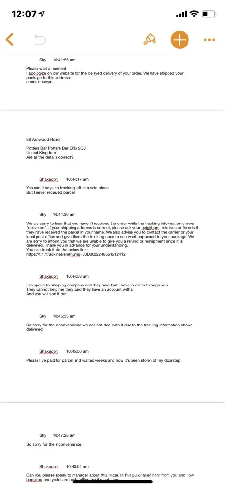 I've contact bangood numerous times and all I get is contact mail company because it's marked as delivered, if left on door step is even classed as being delivered. So received an email back from yodel(mail company) stating that they are happy to refund but the company (bangood) have to initiate the refund with them.