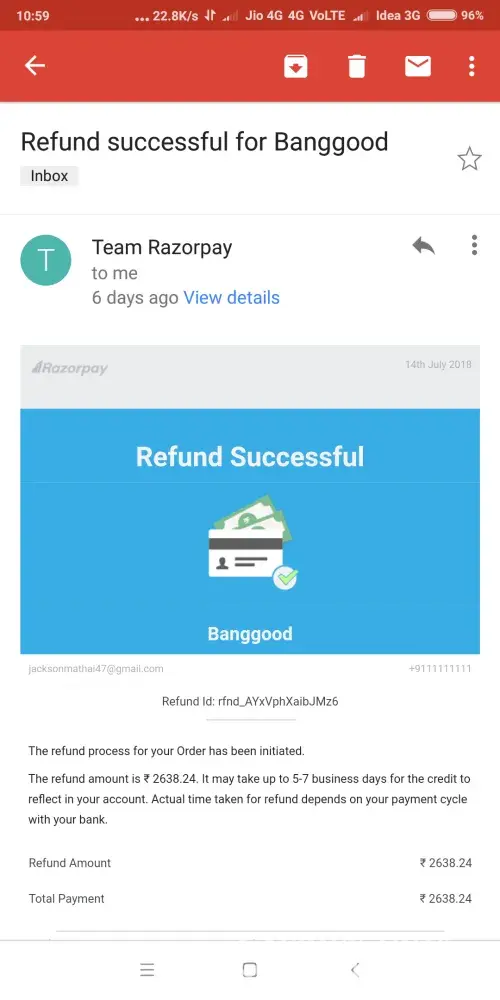 After few days they sent an email from costomer care and told me that my refund will be sanctioned.
