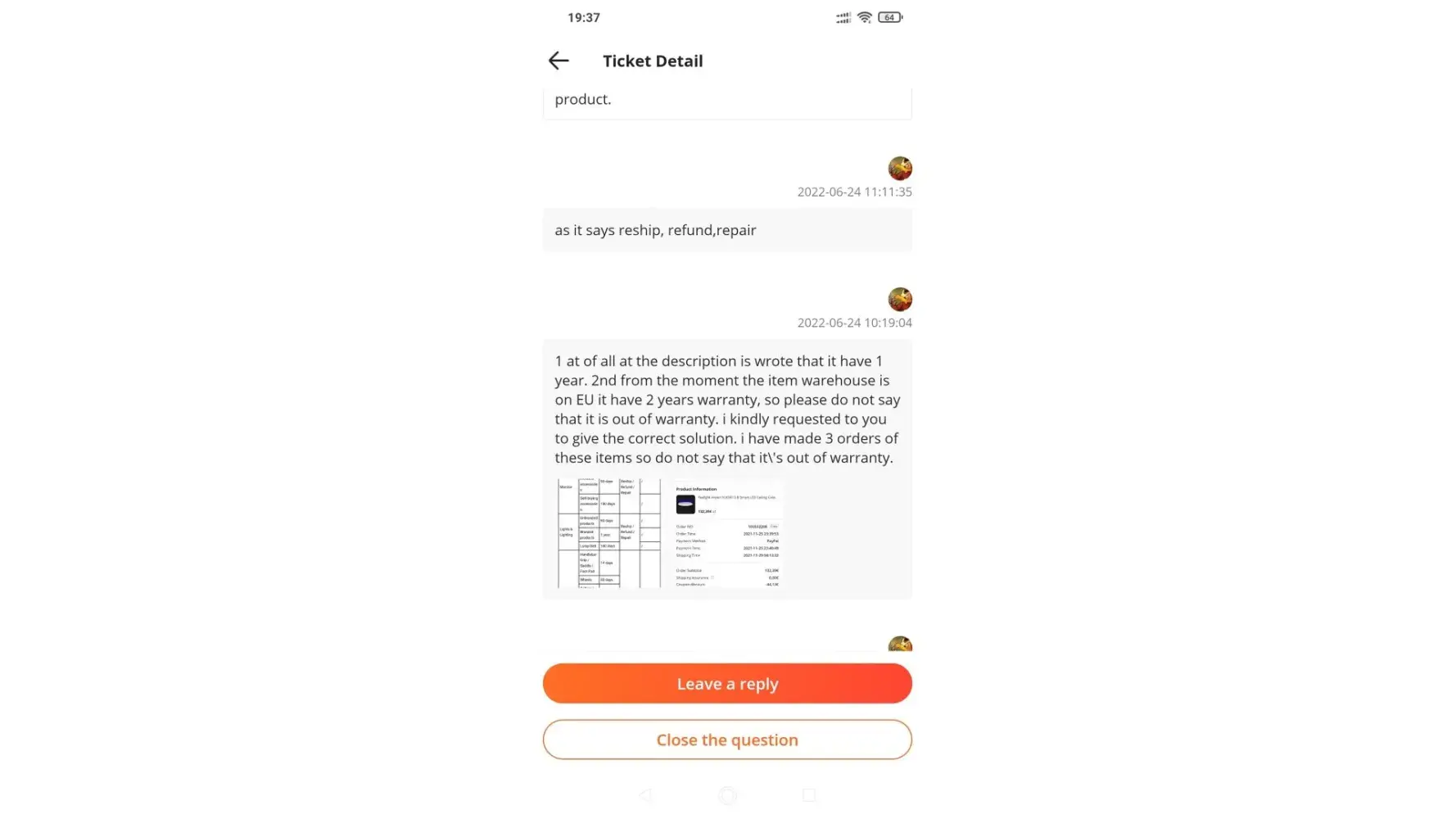 I am a Banggood customer for many years with more than 100 orders and I am deeply disappointed with the customer support at least in this case.