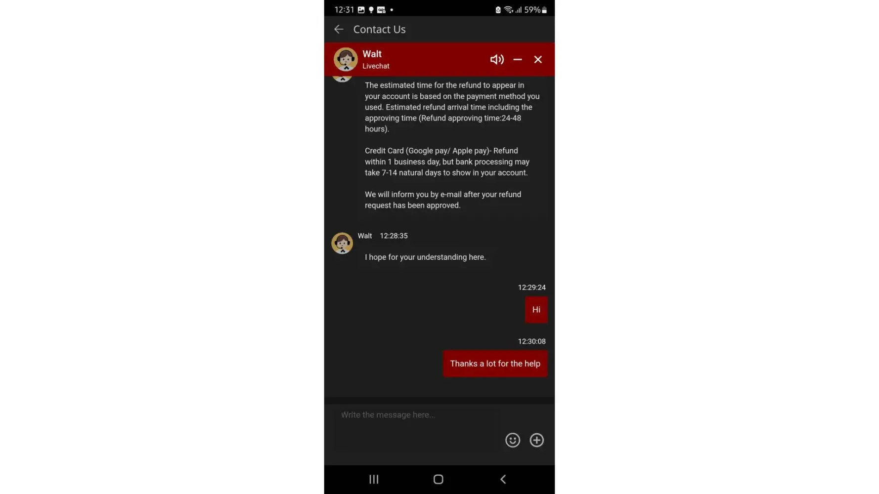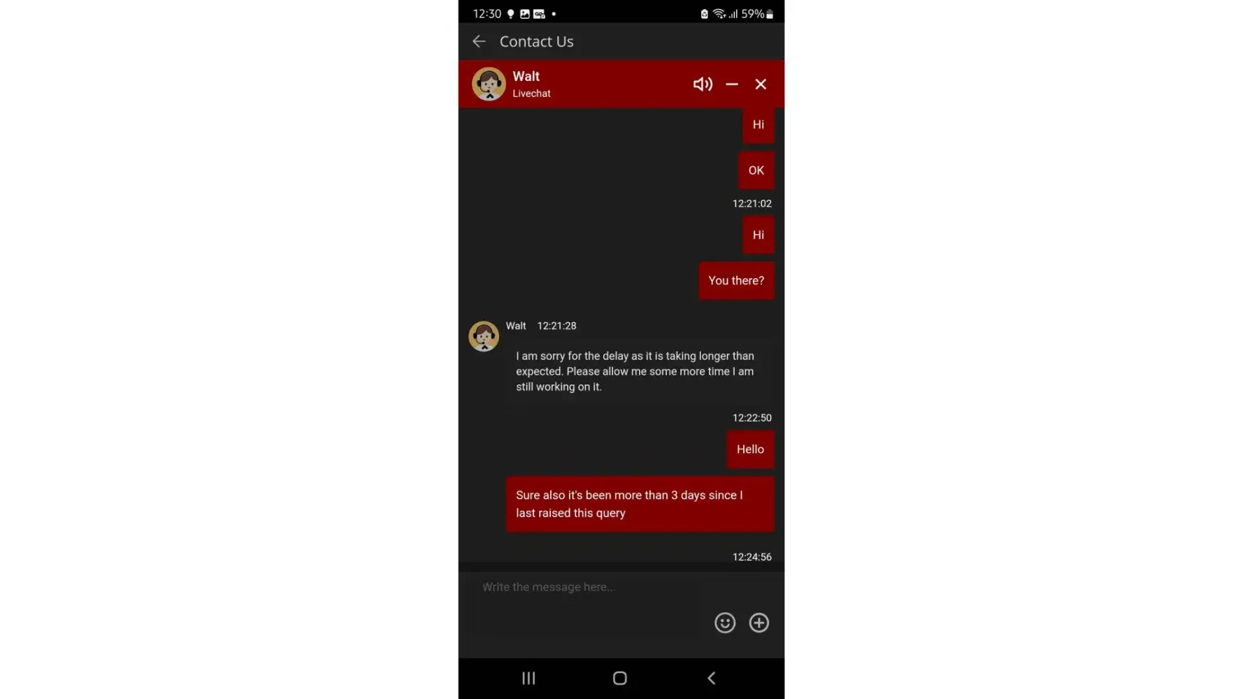 I wrote again in the chat, told them about the entire process, and expressed my unhappiness.