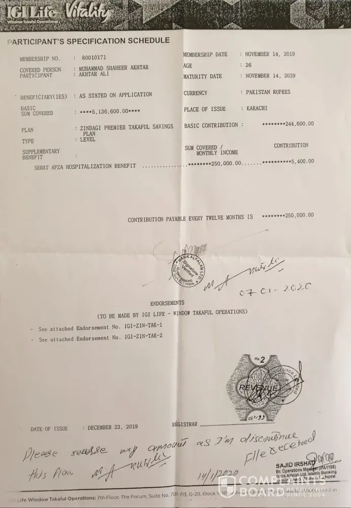 ÛŒÛ Ù„Ø§Ø¡ÛŒÙ Ù¾Ù„ÛŒÙ† آج سے تقریبا چار Ù…Ø§Û Ù‚Ø¨Ù„ بنک میں مجھے بتایا گیا اور Ú©ÛØ§ گیا Ú©Û Ù…Ù†Ø¸ÙˆØ±ÛŒ پلین Ú©Û’ بعد آپکو Ù¾Ù†Ø¯Ø±Û Ø¯Ù† تک اختیار Ûوگا جاری رکھیں یا ختم کروا دیں 15 نومبر 2019 Ú©Ùˆ میرے اکاونٹ سے ڈھائی لاکھ روپے نکال لئے گئے Û” میں Ù†Û’ Ù¾Ù†Ø¯Ø±Û Ø¯Ù† سے Ù¾ÛÙ„Û’ ÛÛŒ پلین ختم کرنے کا Ù„Ú©Ú¾ کر دیا لیکن رقم آج تک میرے اکاونٹ میں جمع Ù†Ûیں Ûوئ میری رقم مع پراÙÙ¹ جمع جائے