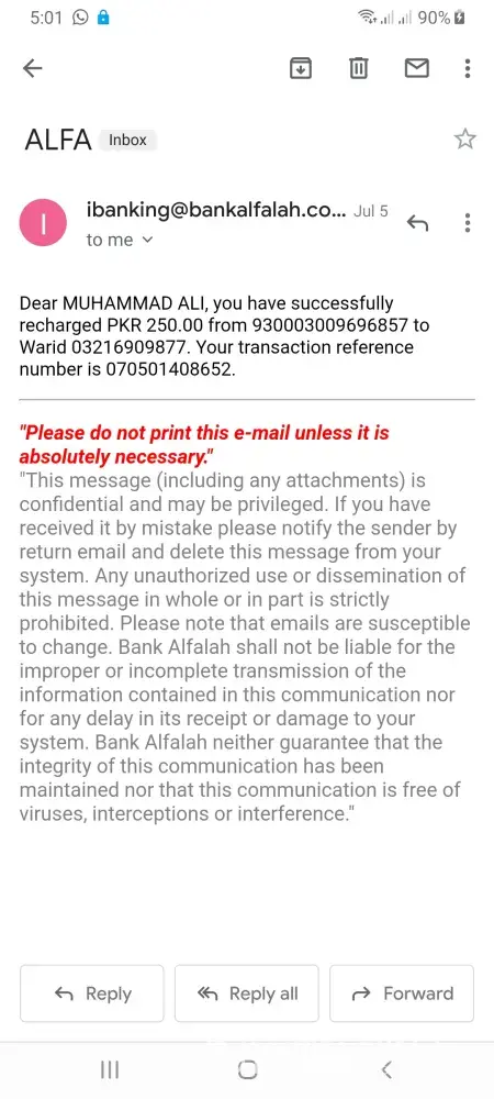 And now when i check late payment charges are applied on my bill which is unacceptable. Do note that i don't have international roaming so can't make calls to call center. As i have tried every possible way, including the Contact us form on website, email on contactus@bankalfalah and Facebook page to contact alfalah since many days but alfalah isn't responding. I will wait for your reply or reply from a concerned officer, if i don't get a response in 24 hours, i will have no option but to write to state bank and banking ombudsman to file a dispute against bank alfalah.