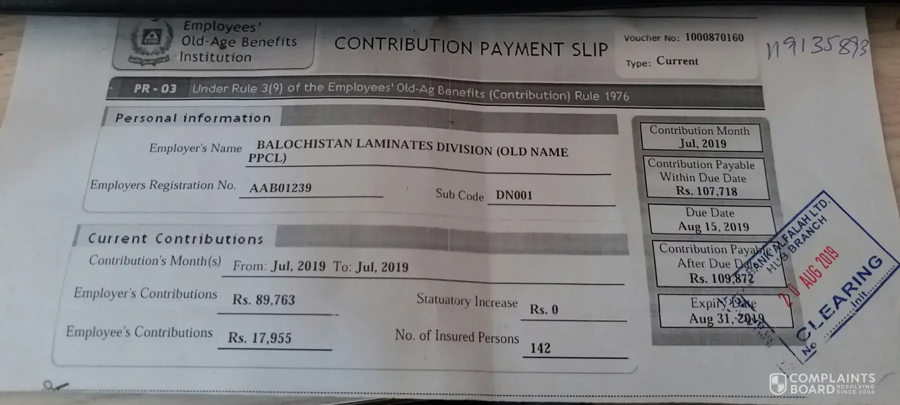This is to inform you that on 9th August 2019 we visit to Bank Alfalah Hub Branch to deposit EOBI Payment voucher but he said that we close all work before first have you will visit after EID, but when visit after EID on 16 August 2019 they said our network down please come after second half we visit in second half but again they reply network is down and same situation on Saturday. Please resolve this matter and provide alternative. Yesterday again i visit to Hub Baluchistan Branch, he stump for clearing and return back and said that link is down when i insist that its 10 days pass but your network is still down he return my cash deposit slip and also return my EOBI payment voucher with clearing stump and EOBI Payment is still undone and overdue