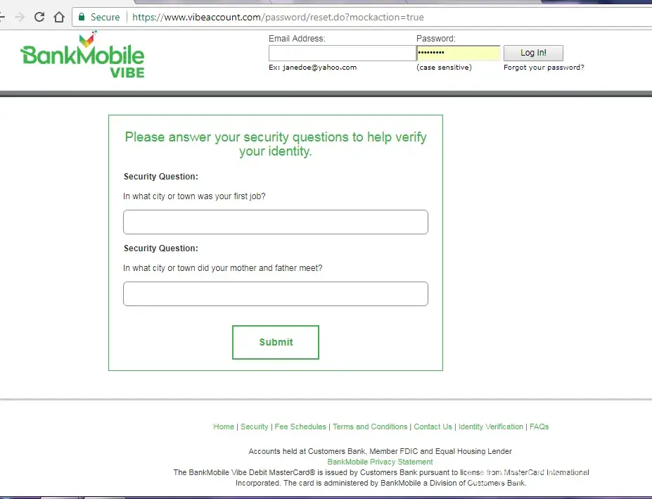 i have tried over and over to communicate with bankmobile web site to reset my password when i entered the correct password to begin with. it went on to ask me 2 of my security questions which i also answered correctly and their web page on their site just kept looping me around in circles asking me the same 2 security question, this is not my only complaint with higherone and bankmobile but i think it should be enough for someone to investigate the situation