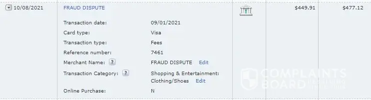 Bank of America unauthorized charge