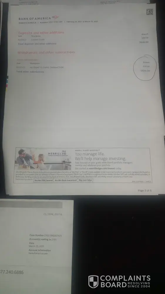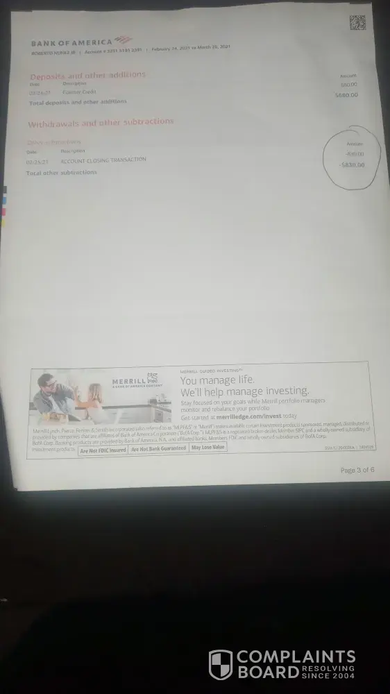 Bank of America Closed my account