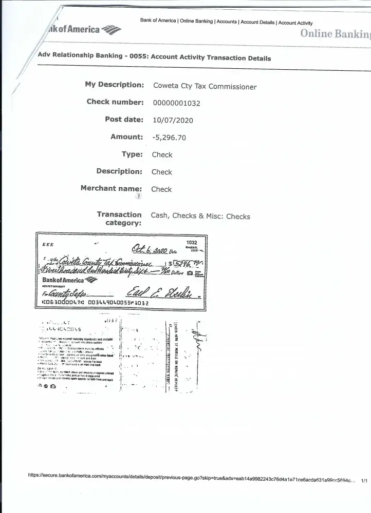 On April 6th 2020 I sent a Bank of America check to my County Tax Collector's office to pay my annual property tax. At the end of the year 2020 I received a letter from my County Tax Collector's office advising that I had not paid my taxes and was going to assess a penalty. I called and later sent them a copy of the check which was cashed by someone. Bank of America made a mistake and cashed my check and gave funds to someone but not the proper party.