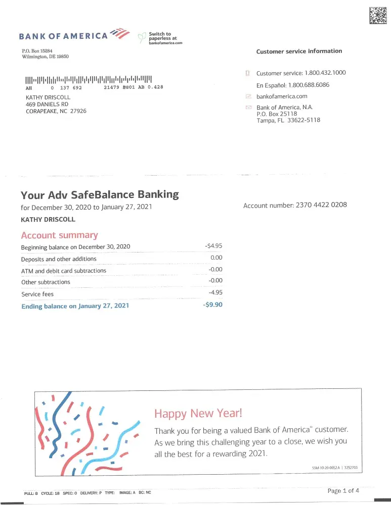 Bank of America Closed/freeze edd boa