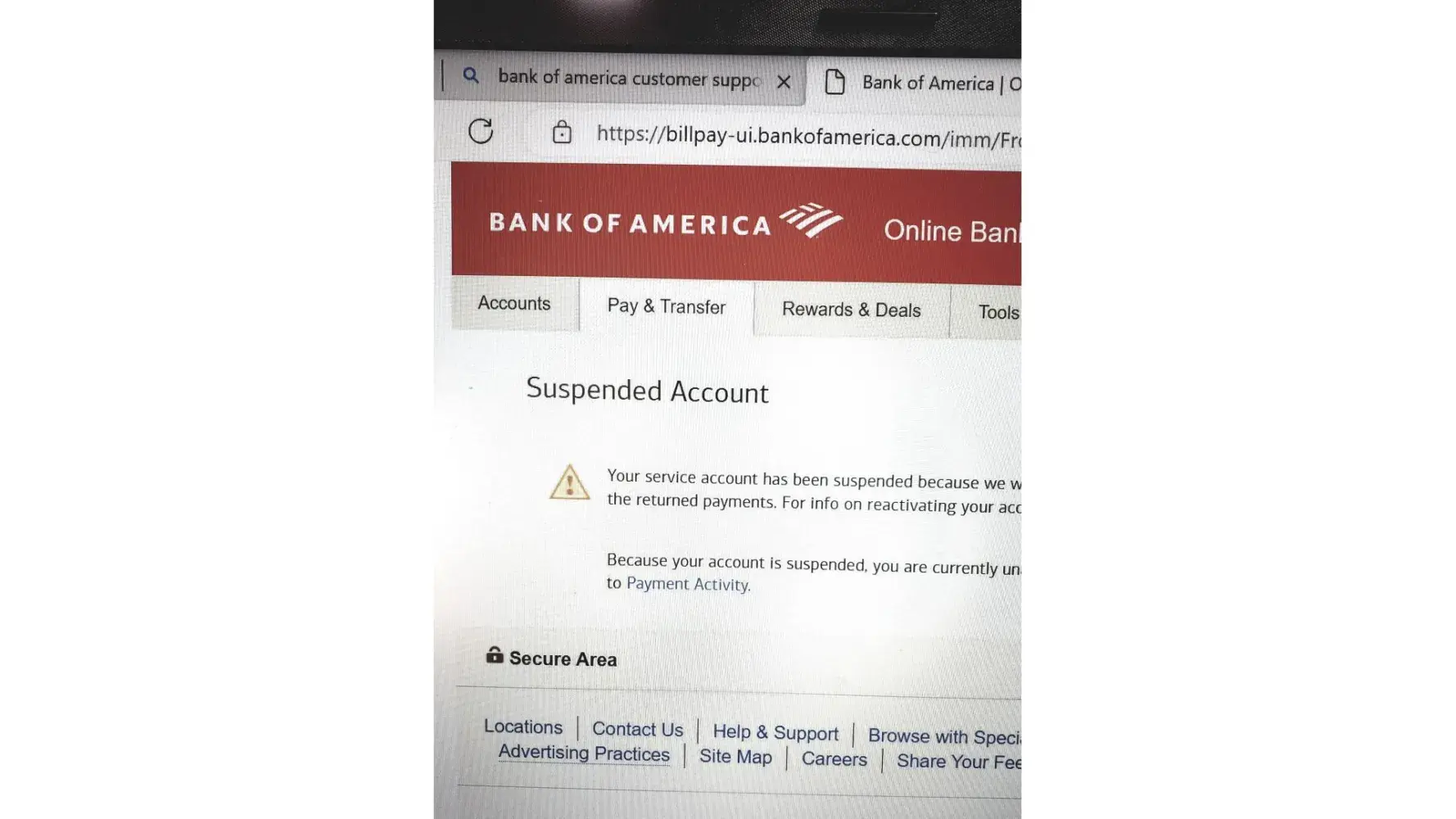 Credit card suspension error
