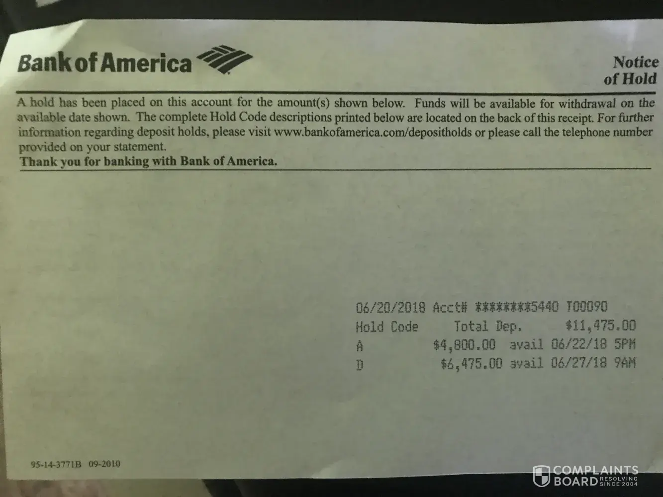 My last straw was this week. I made a check deposit on 6/20. I received a notice that the funds would be available on 6/22 at 5pm and 6/27 at 5pm. I always hold onto these notices so I can make financial decisions based on the information. Unfortunately, I found out on 5.30pm on 6/22 that may payments were not being honored because Bank of America added another 5 days to the hold without letting me know. I also found out that they funds wouldn't be released until 6/28. I did not get an email, a phone call, nor was there any indication of a change on my online banking account, which I use several times a day. I had to call myself at 530pm after phone calls from very upset employees.