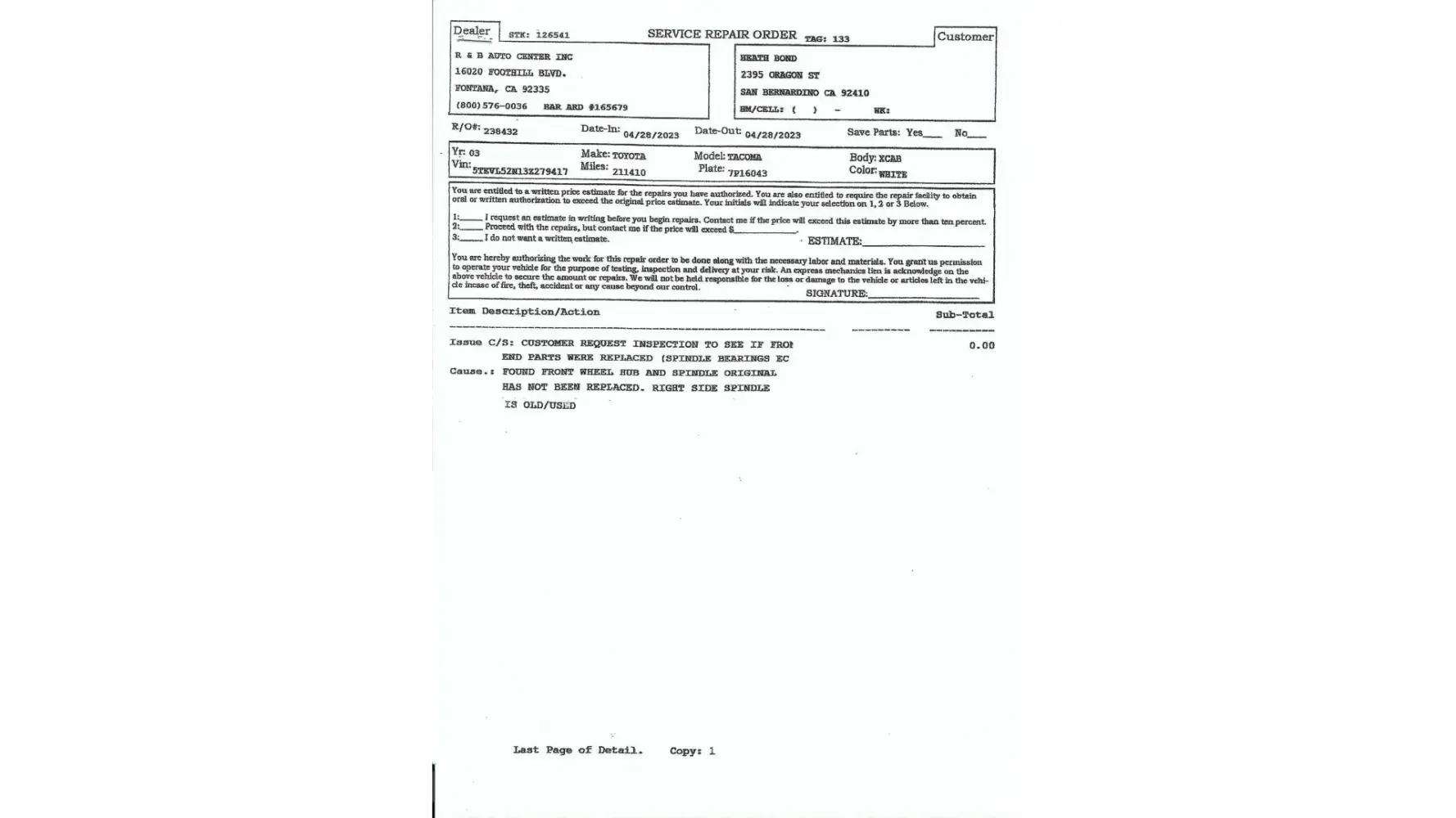 Desired outcome: need to repay me for money charged to my card. Nicks auto Claim [protected]