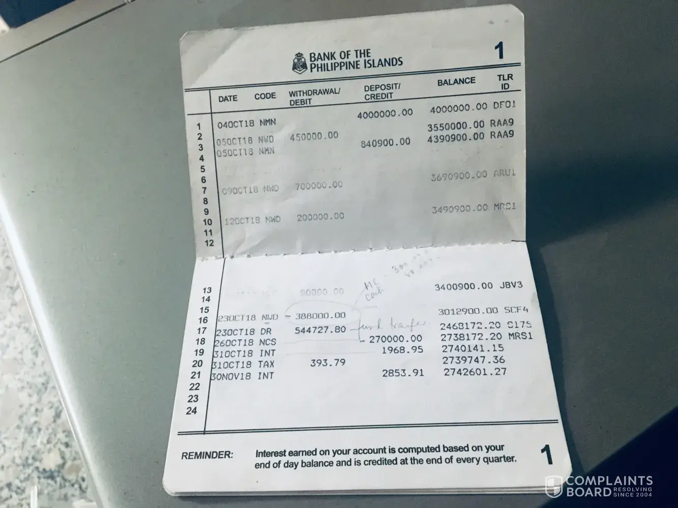 The is regarding my account No. [protected] for Ligaya and Mark Florentino opened at Branch 0318 Cubao Supercenter. On Oct. 25, 2018 I deposited a Manager's Check No. 014753 amounting to P300, 000 plus P88, 000 cash to my savings account. I was seated and counting it infront of Asst. Mgr Jossette Metrillo in BPI Sucat Branch, Pararaque City. The check was dated Oct. 25, 2018 issued to me by my prospective tenant Ms. Shekinah Luis as her one year house rent for my house in BF Homes, Paranaque City with P88, 000 cash . The amount was posted P270, 000 on my passbook which I did not notice before I left the bank because I was in a hurry and stressed due to my trip back to US on Oct. 29, 2019 . Six months after the transaction I went back home to Phil. and talked to Mrs. Metrillo, but she said she cannot remember as there were so many transactions she had handle. that day.
