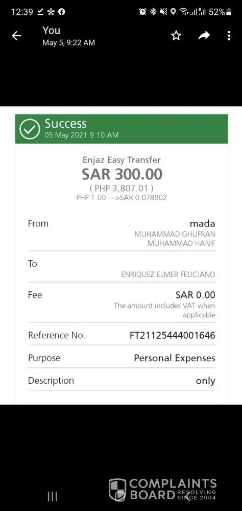 Read full complaintBanque Saudi Fransi complaints: history and resolution overview