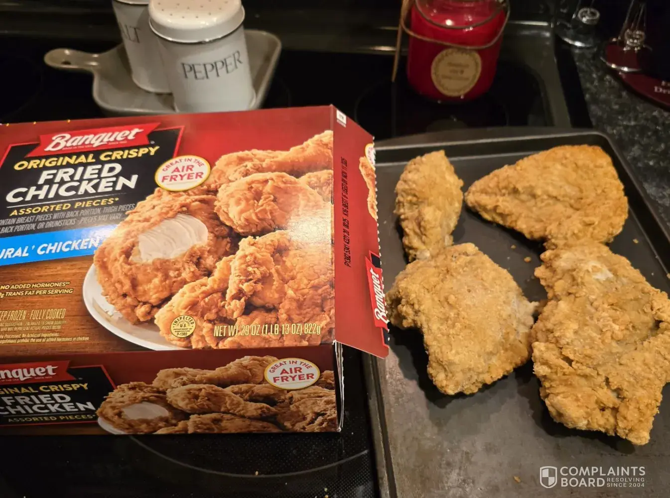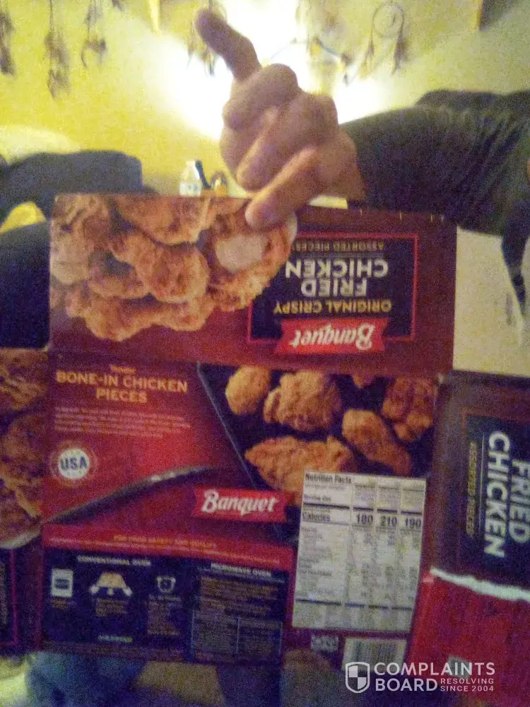 I purchase a box of banquet original fried chicken it only had 4 pieces of chicken in it 2 breaststroke and 2 thighs this product is too expensive for you to rip off the consumer. I will never buy again. And will let others know about my experience.