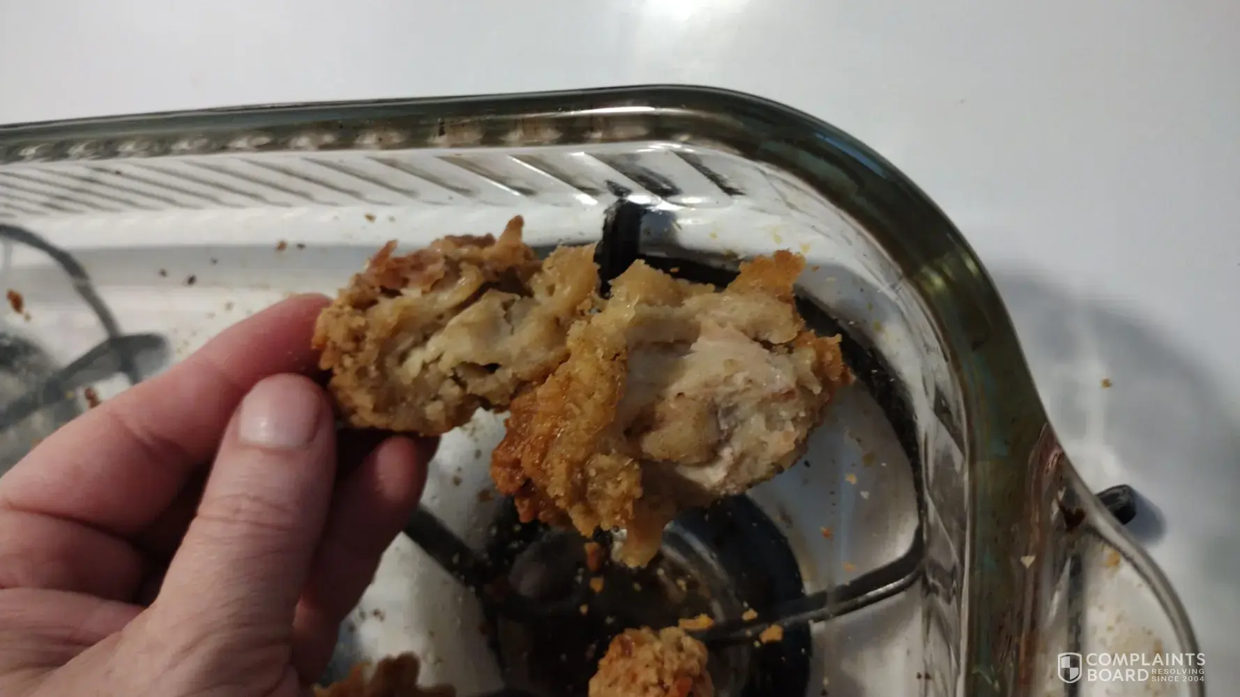 Amen to that. Same thing we had. So much flour which enrd up like tyese thick paste chunks that you really couldnt nor waht to eat it... disgusting.. And when you got to the chicken, you honestly have to wonder what the hell you're eating.. bones from the rib cage off the breast are tiny slivers of bones. Like a tiny bird or "something else".. very scary. And the thigh bone was very tiny too. Not normal.. something is not right with their chicken.. will never buy it again! Said that the last time we bought it.. but this has done it for us..