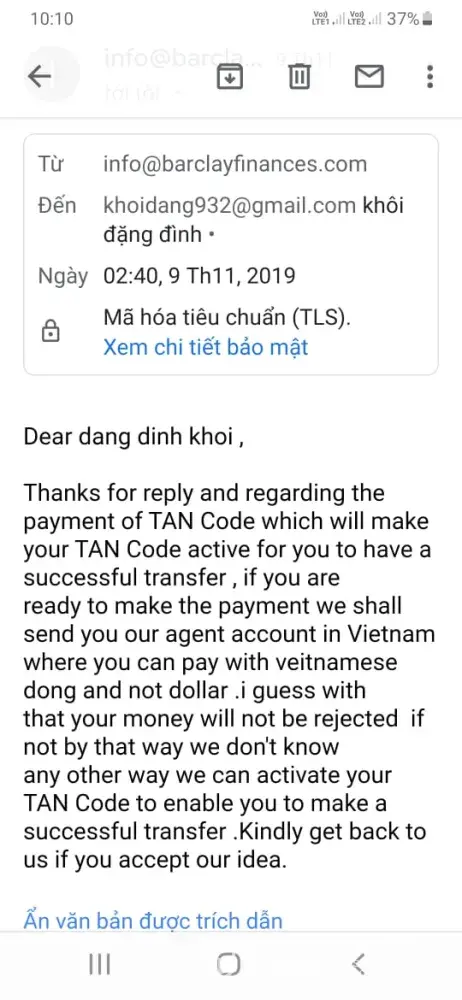 Why barclay finance bank force me to close the TAN code fee...