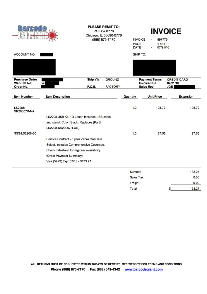 I mailed the scanner off and I thought it was done. At this point, a month had passed from when I first received the scanner to when I was finally able to return it. The company apparently doesn't cover return shipping which was annoying but the most important thing for me was that I return the item and get the refund. After I mailed the scanner off, another month had passed before my boss came to me saying that the barcode scanner refund never posted to the company credit card. I, once again, called BarcodeGiant where once again the employees seemed unsure of how to handle my situation. Apparently, the credit for my order was posted to their internal system, but they didn't submit the credit request to my company's credit card company. They never explained why they never submitted the credit to the credit card company.