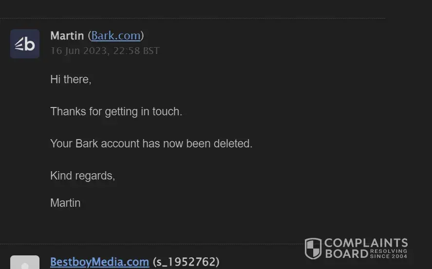 I voiced my complaints, urging them to escalate the matter to a manager, or I would leave negative reviews about their service, which seemed like clickbait. Only then did I receive an email from a director, terminating my account due to my multiple complaints against them. I was deeply disappointed by this experience and cannot recommend Bark to anyone.