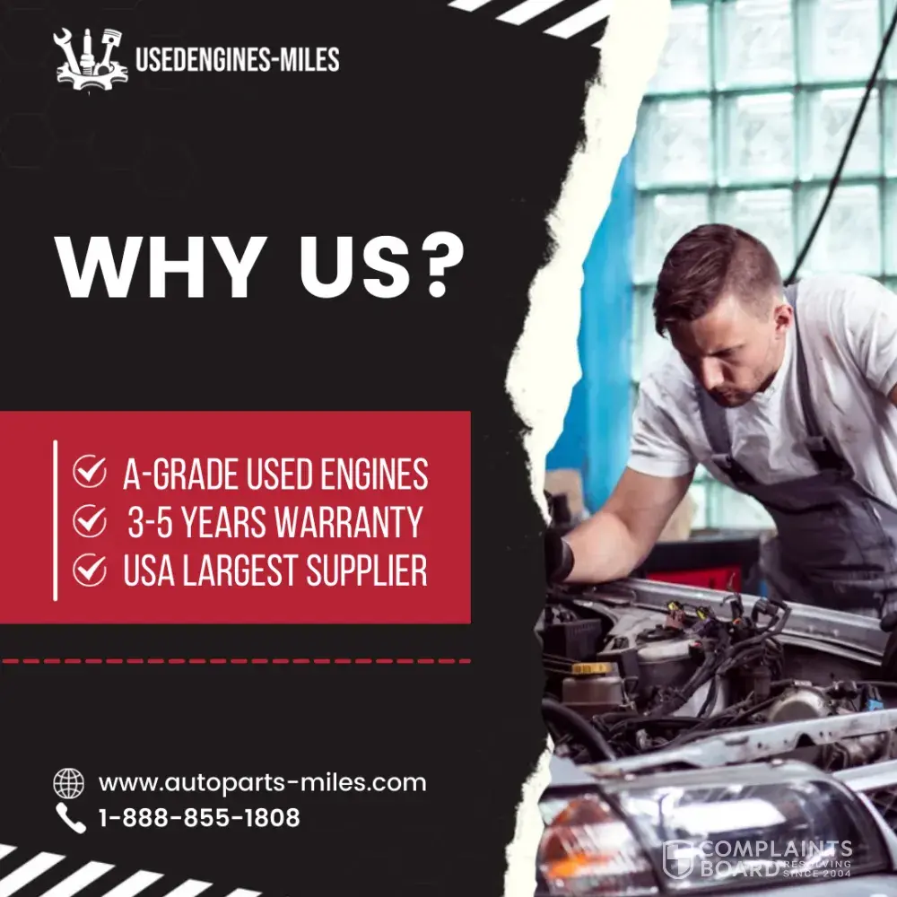 Engine had a bad valve on the driver side when it arrived from them. Then the head gasket on the left side failed after 100 miles. Their workmanship is poor and they don't honor their work, word, or the warranty. They don't want to talk after the sale. I do not recommend them.