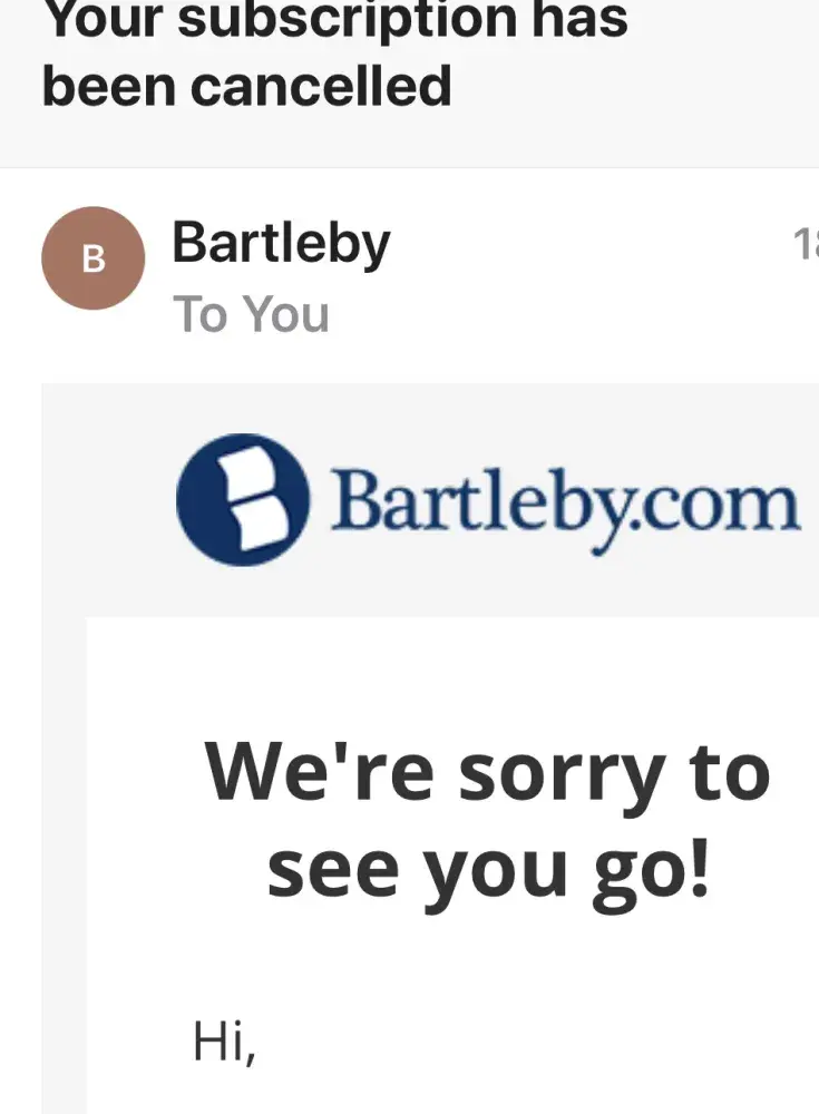 I used bartleby months ago for help with essays for school. It was a very good service. However when school ended obviously I no longer needed this product. I went under my apple itunes subscriptions and canceled it. Then I went into bartleby and canceled as well through an email. Today I just noticed that my account is continued to be changed monthly $29.95. This needs to be resolved and I want my money back now!