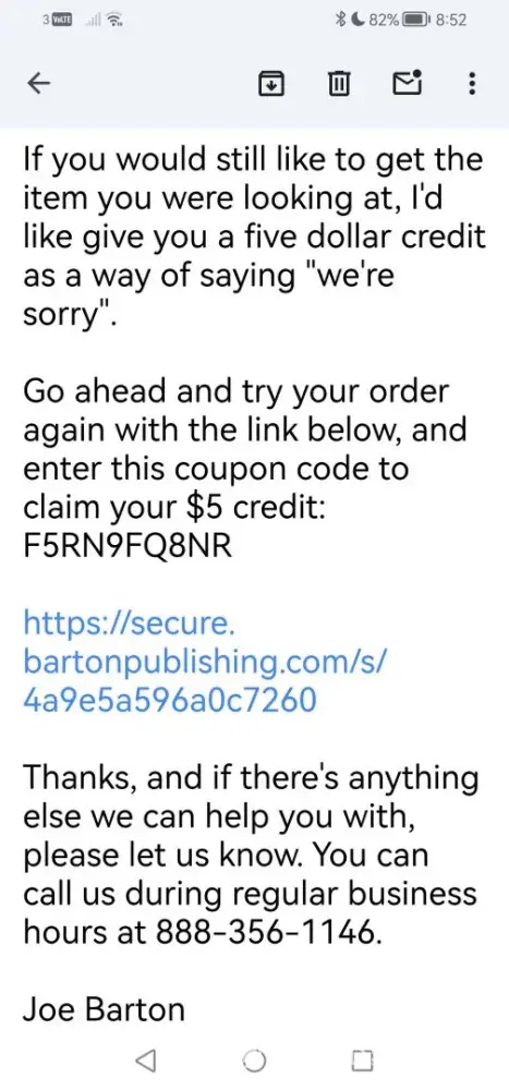 I do hope that Barton Publishing can treat their potential customers fairly, and uphold good business practices to maintain goodwill.