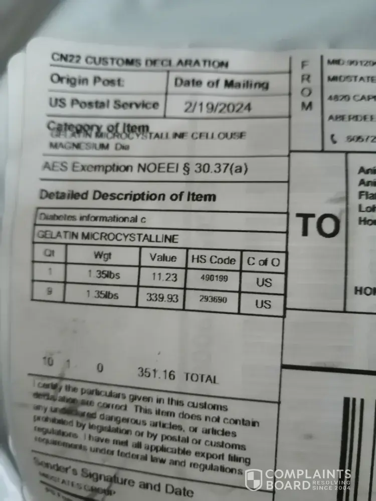 Claimed loss: US$384.92 plus shipment fee for products from Hong Kong back to the United States
