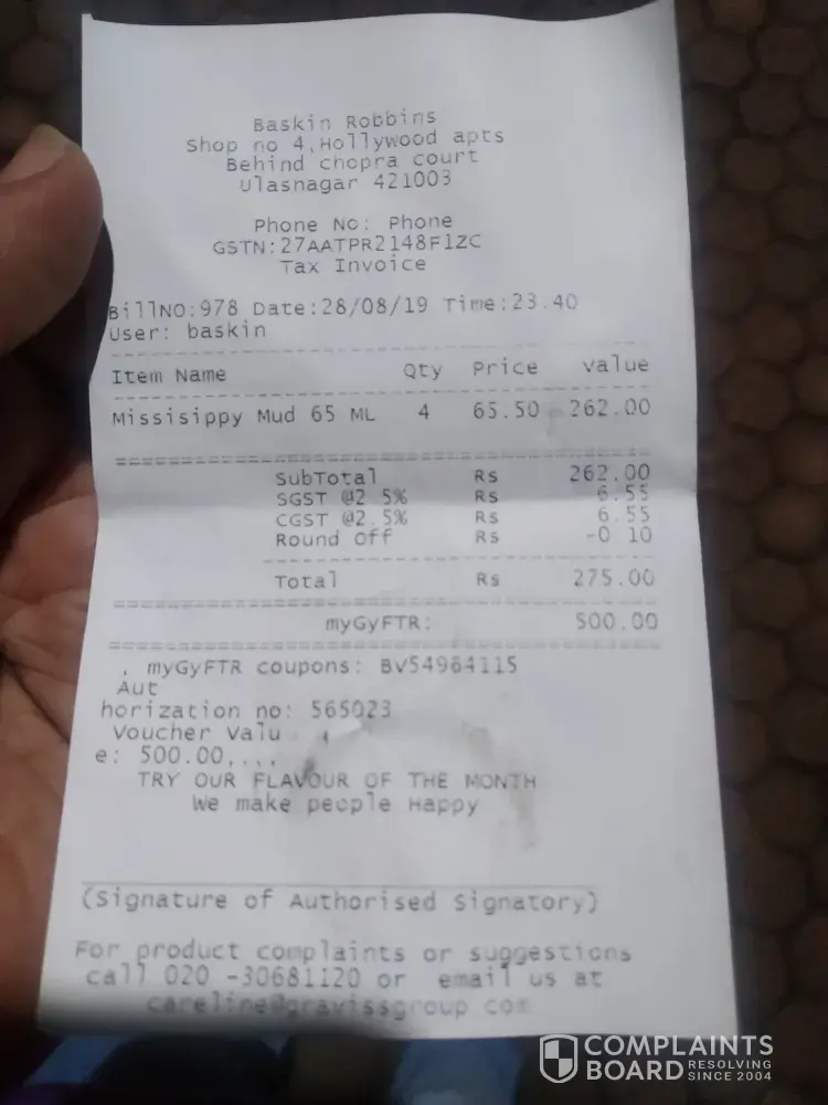 Read full complaintBaskin Robbins does not care about its customers