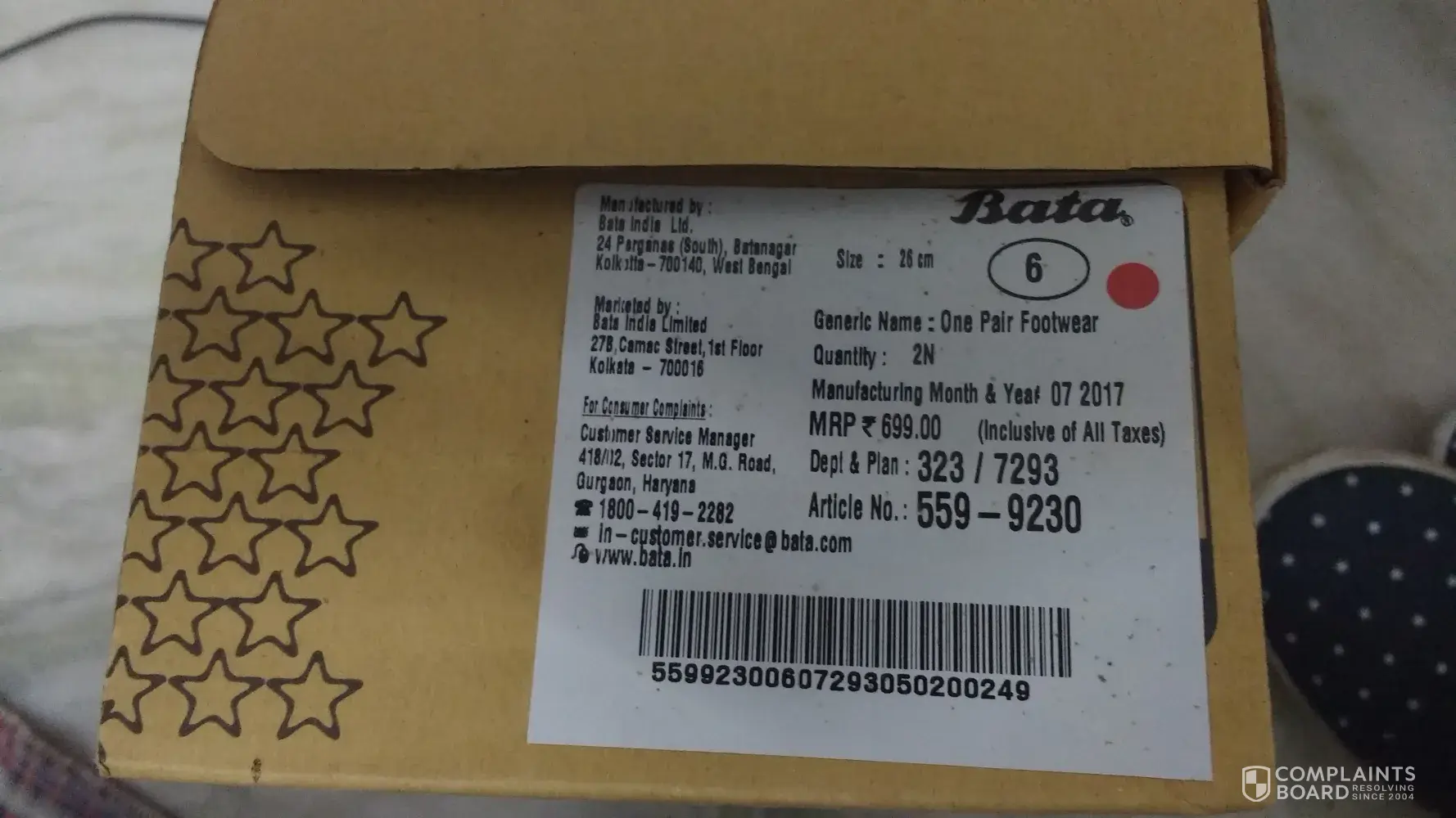 wrong size shoe provided inside the box