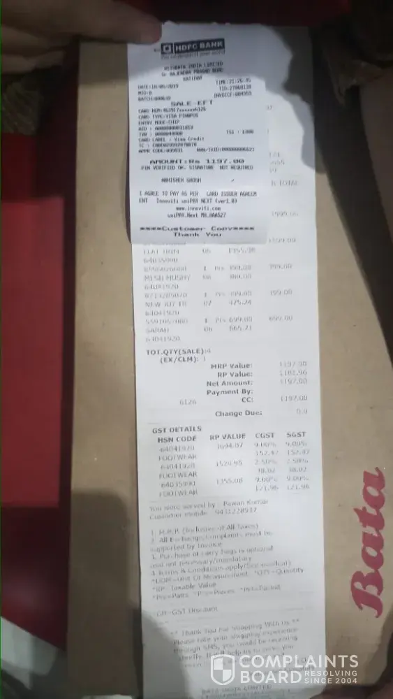 But nobody from Mumbai office contacted me or no progress has been done regarding this matter. I have even written a reminder letter to bata on 14/02/2004 but the result was same. I just want to convey to you all that 'SAY TATA TO BATA.'