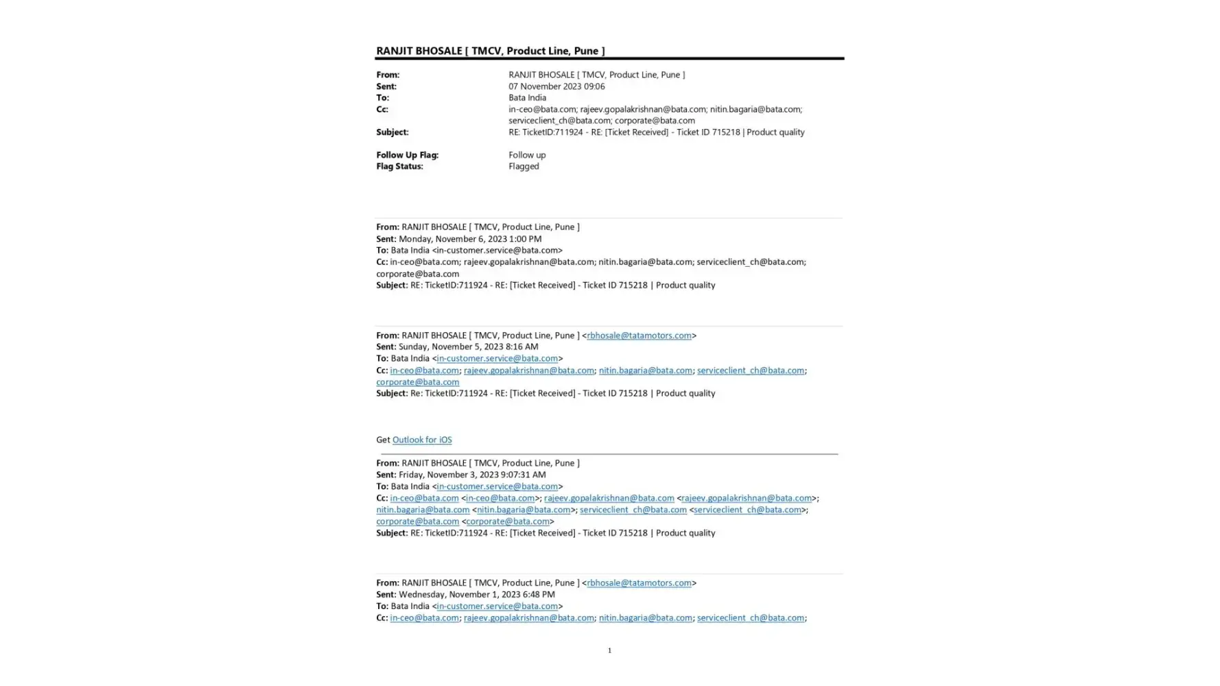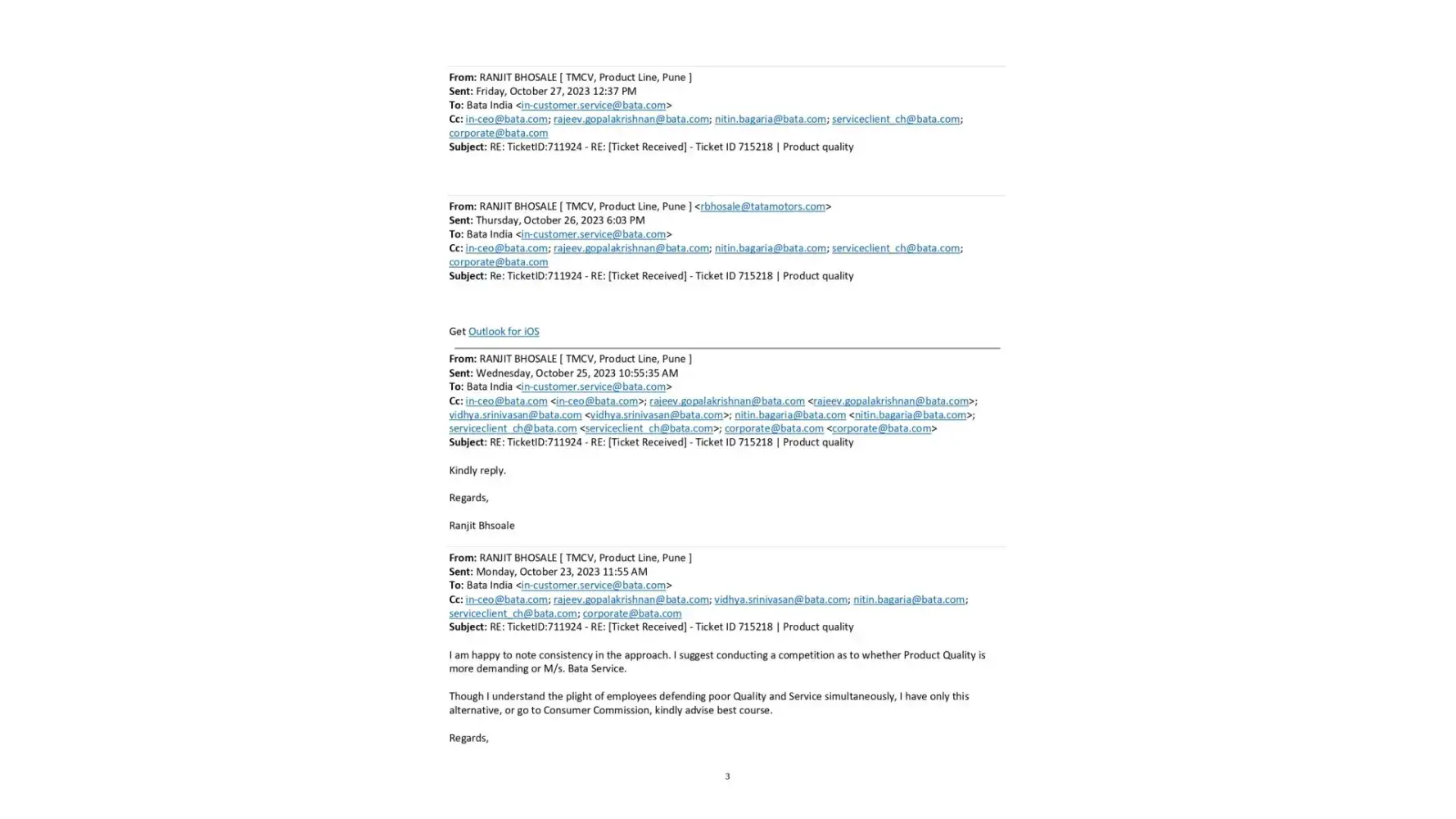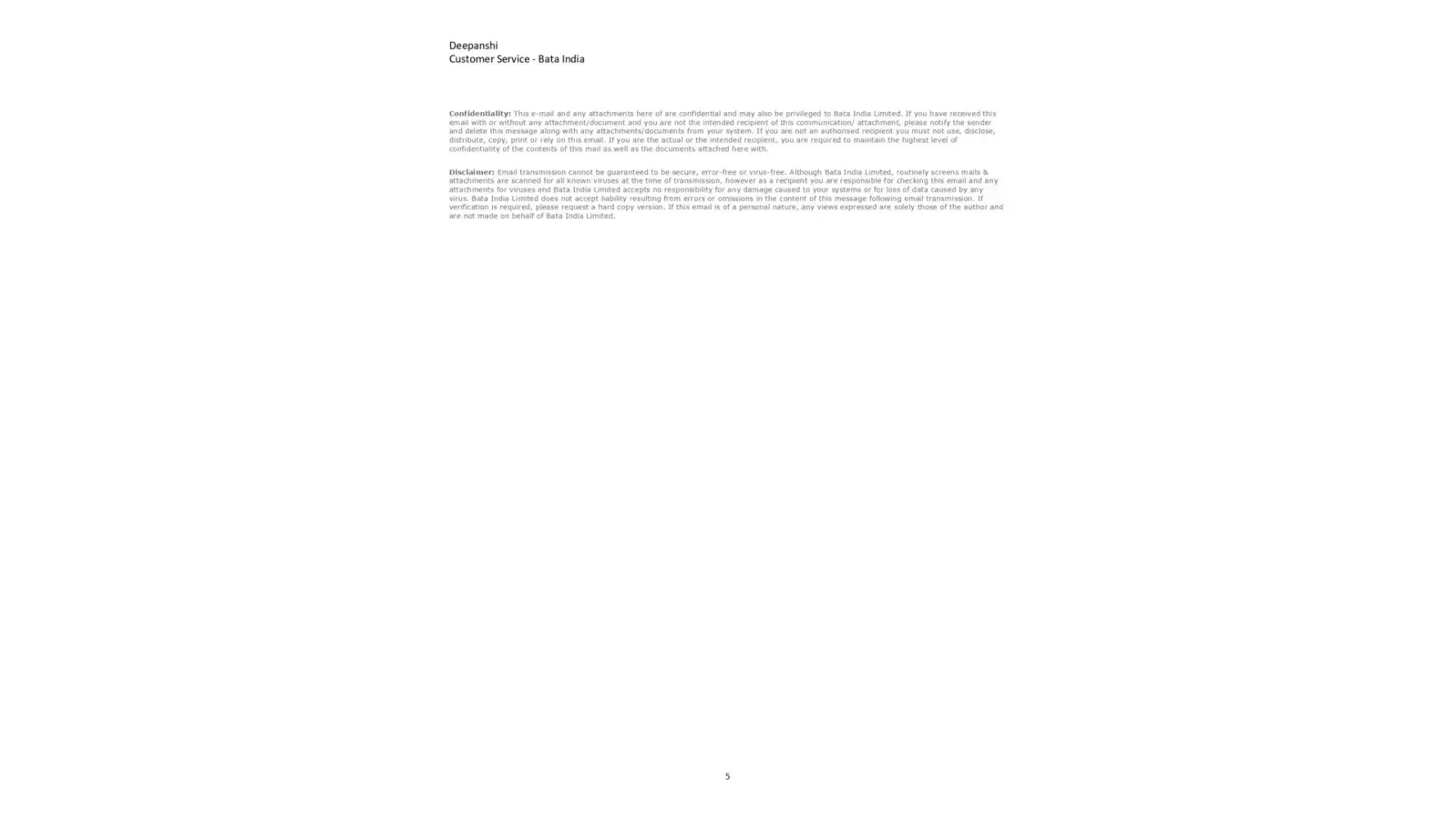 A copy of email to Bata India Ltd:
