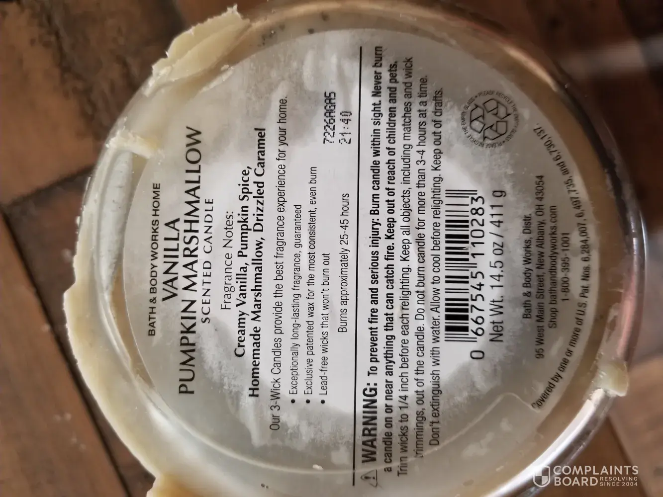 I have used the 3wick candles for years. Yesterday, after using a candle for only the second time, it began to melt the plastic wrapping and began to smoke severely. This has never happened and I feel unsafe using these plastic labeled candles now. I hope that Bath and Body works takes this complaint seriously so that it doesn't happen again. This could have led to something much worse!