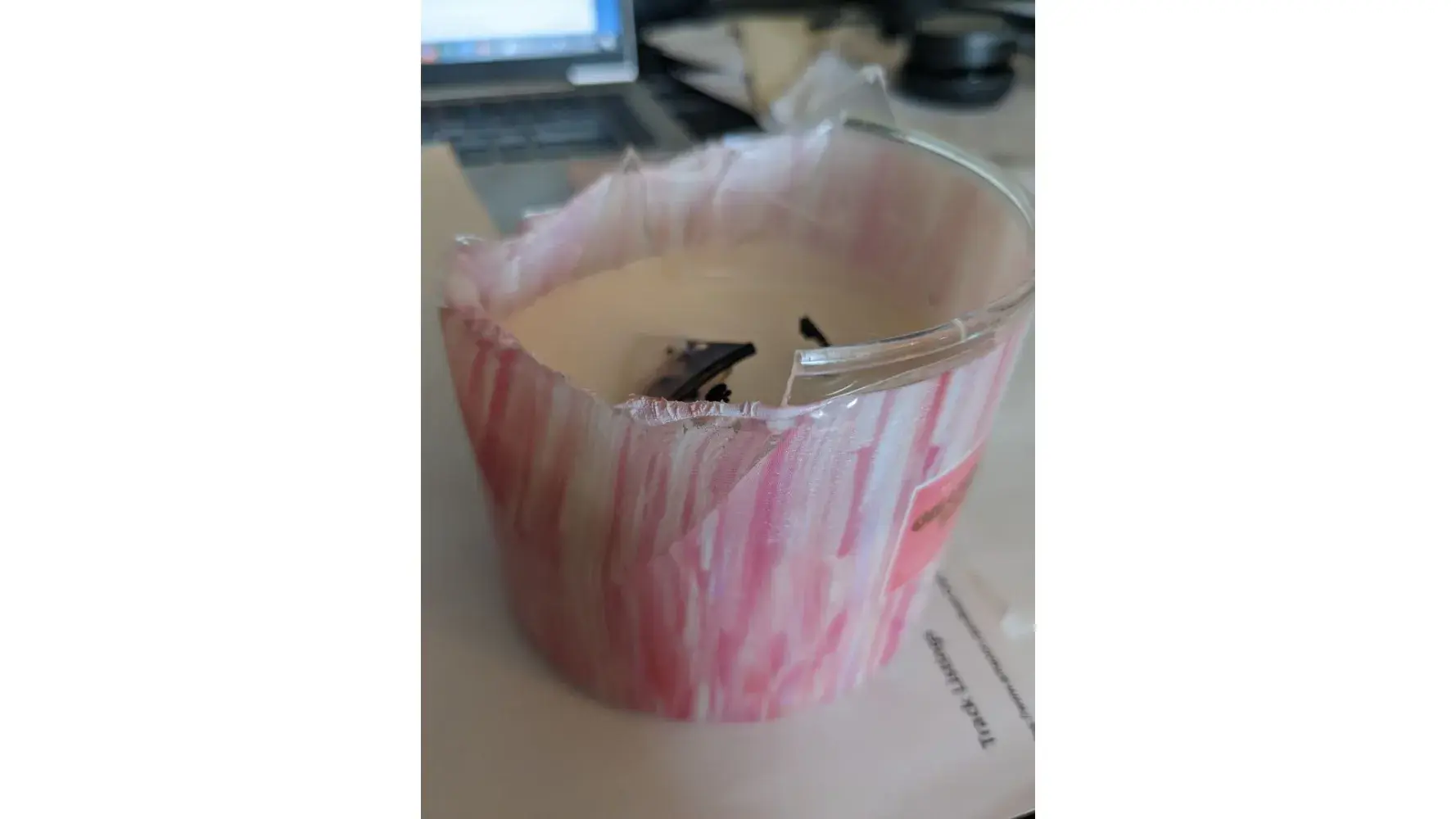 Hello I purchased this candle on 5/13 from my local Lynchburg VA store I lit it yesterday And it literally fell apart The glass broke and it melted into itself I'm so glad I heard it crack as it could have caused a lot of damage to my home The glass literally broke off and fell into the candle and the candle wrap was on fire Very dangerous I called your...
