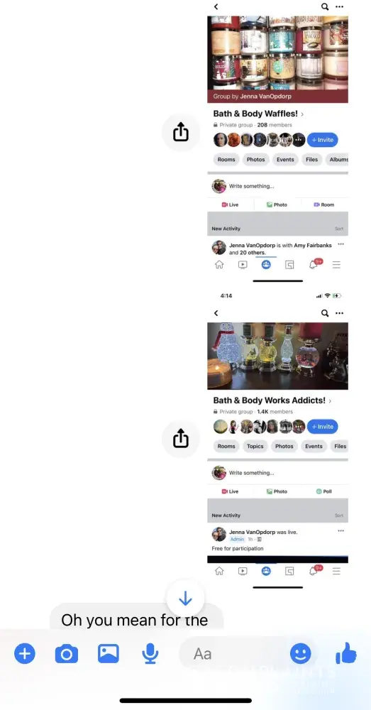 I have knowledge of Jenna Vanopdorp using the company's name of Bath & Body Addicts, to steal and fraud people on Facebook by not sending Bath & Body Works products owed, to make a living to pay her bills. I have pics and txts and receipts of money transactions. I also have many more txt and pics. That I feel will instrust you. Thank you for your attention.