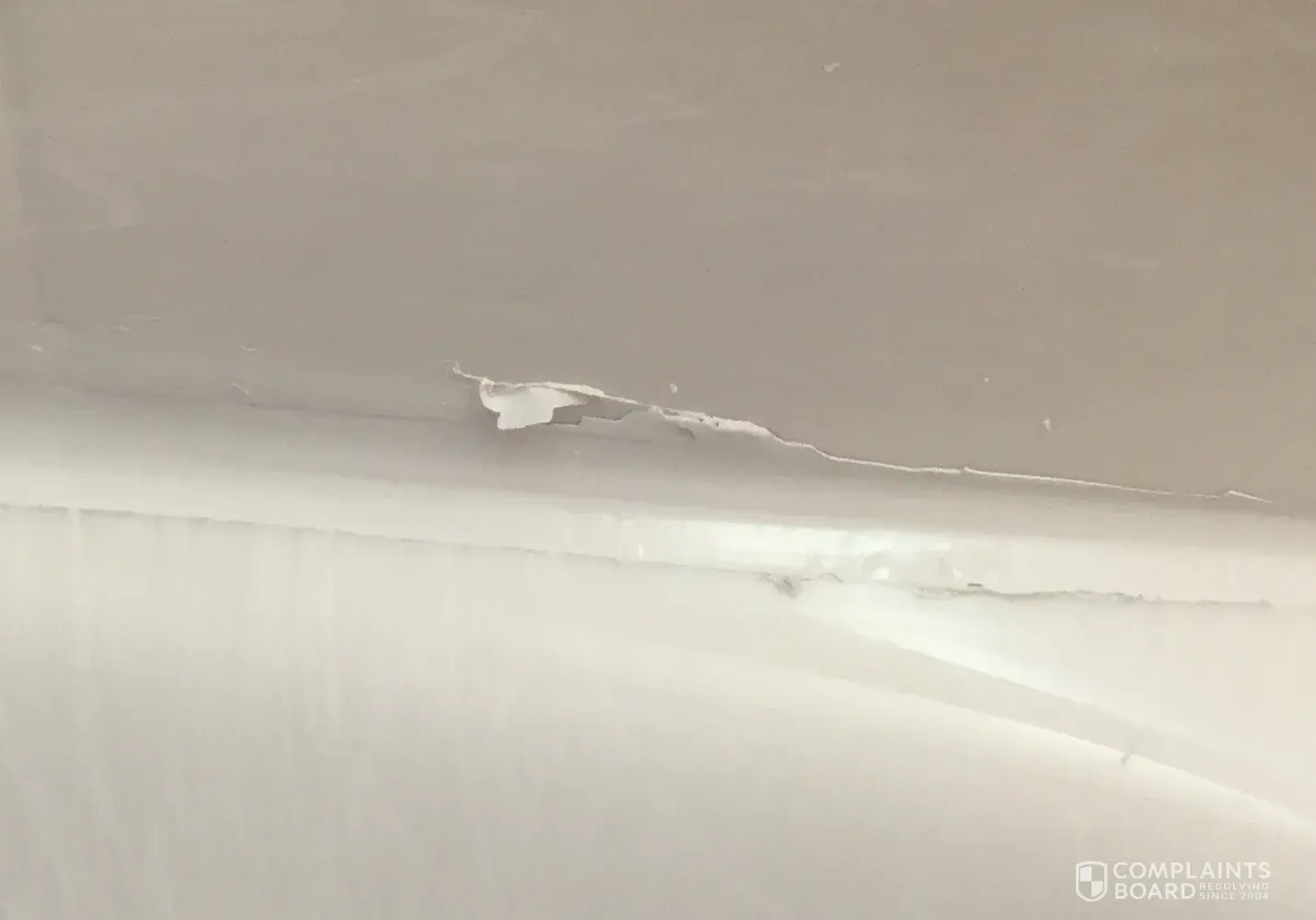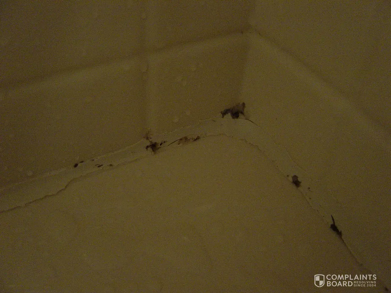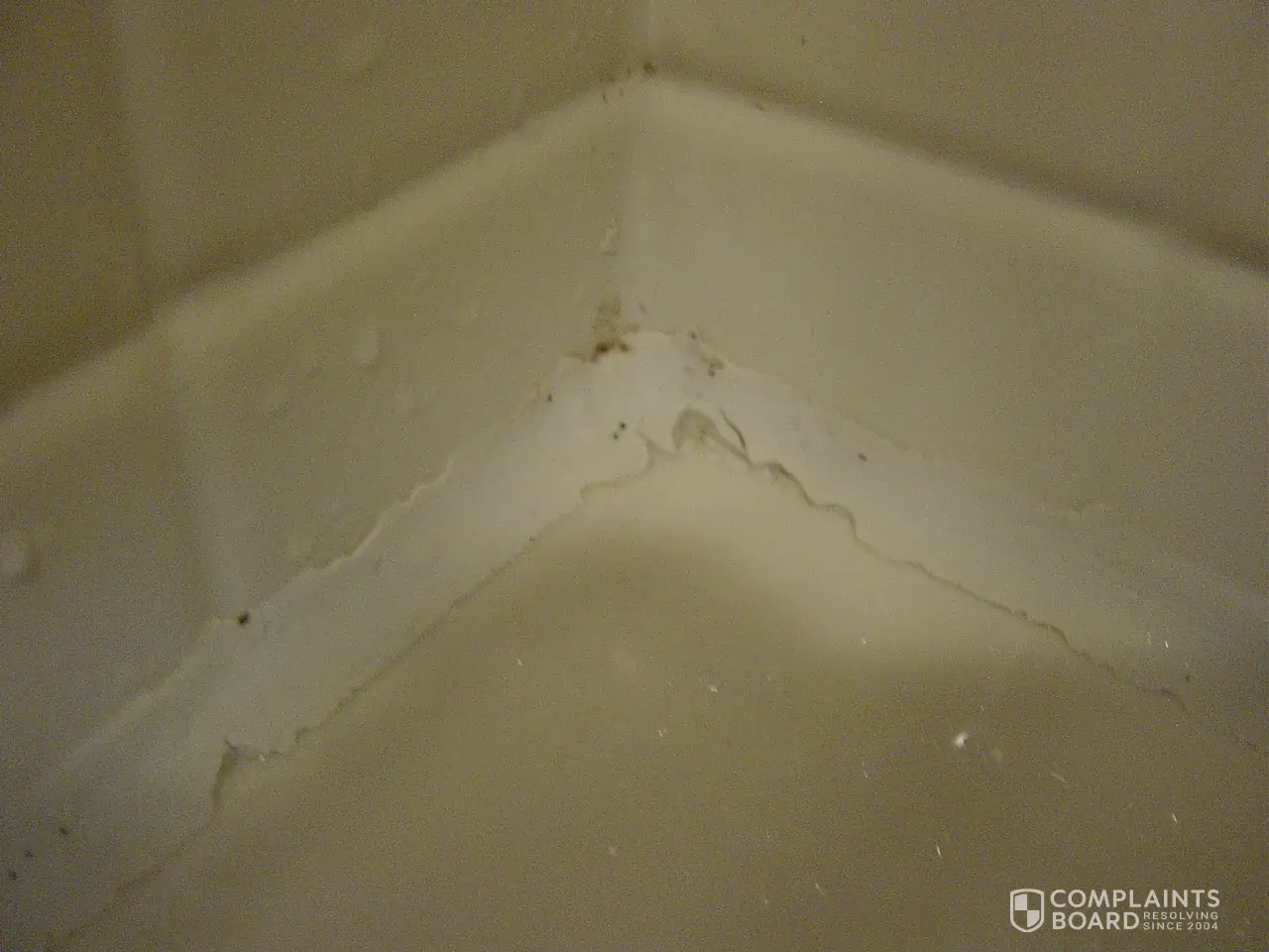 3) 10/16/13 Oscar (installer)i arrived to start the job he said he could not screw poured molding to wall and that it needed to be gutted. I said okay thank you for showing up I was not spending any more money on renovation, he then said he would gut it. When he took the wall down he said he would use green board which is water resistant and when I looked in he was using plywood I asked him why and he said he needed to for strength for grab bar. I have now learned that ply wood is the wrong thing to do, it absorbs moisture and will haunt us in the future. Oscar never used drop cloths and dragged all material throughout my carpeted living room which he had to walk back and forth to get to bathroom. I then put down sheets of my own. 10/17 Oscar came back to finish job. I asked him why there were so many seams and so much silicone and he said that was the only way this shower could be done. I think there were 4 seams in total. What a mess! Threshold was slanted out of shower so water would run on floor of bathroom at least 4 seams moldings glued on top of old moldings filler under tub that would have made it impossible for Glass Company to install separation from shower and tub. After he left I called Roger(manager) and wanted a meeting with him and Maureen.