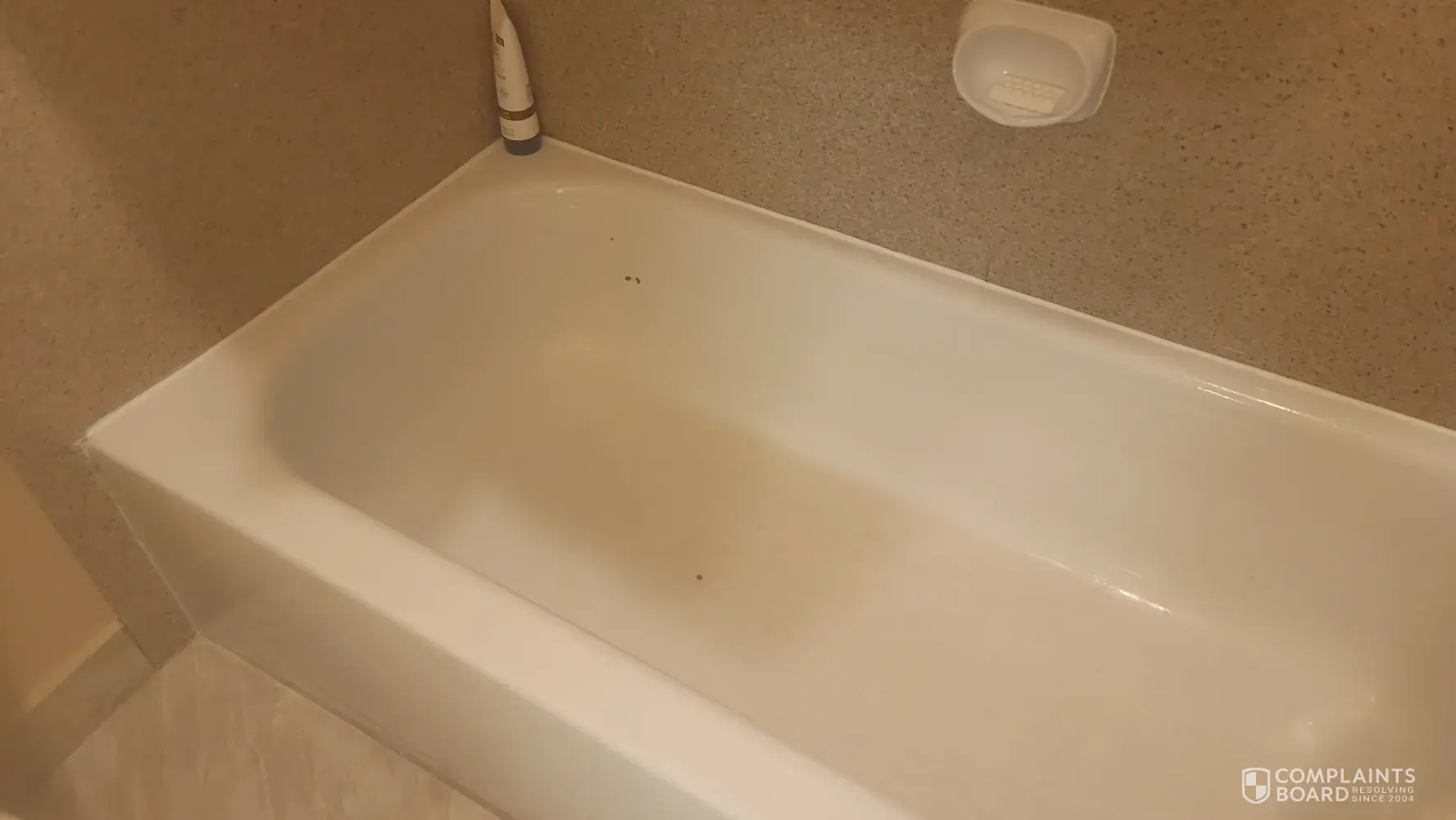 The bathroom was dirty the floor the tub and the mirrors the curtains were broken so we got woke up early the floors in the room needed to be vacuum they room just was a mess I have pictures and I'm going to send them because I want my money back and we will never stay at a Baymont ever .THE front desk person was on his phone walking the hallways on speaker phone