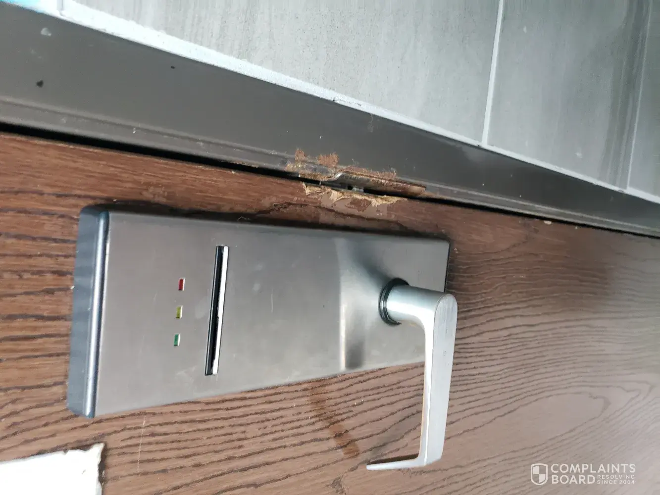 - Night Audit screeeming "who are you, what are you doing in this room?" Through the door while pounding on door. He was trying to bust through the chain on the door