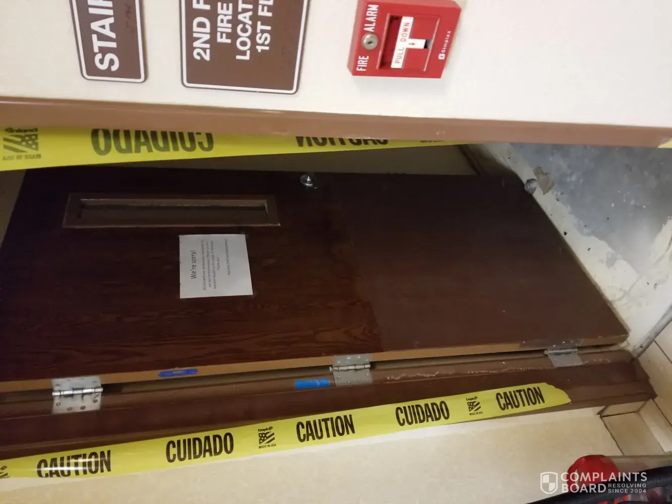 Upon arriving we were greeted well with the staff, but we were notifited that the elevator was out and that we would be having to use the stairwell. Thats where this gets bad. My 28 year old son is handicapped, stairs are not the best thing for him. We were successful getting him up, but with alot of anxiety. You see, the stairs were caution taped off as closed due to the floor being ripped out and there were no lights.The staff used flashlights and did the best they could. We were informed that the elevator would be fixed asap. So to my dismay the next day the same thing. This time my wife and son and myself had to use the unlit, nail protuding stairs yet again. There was foul smell throughout the halls and room. On the second floor there was mold growing in the ceiling . We were in room 223. I am requesting a full refund and a apology. Also the stairwells had a closed note (not to be used) and no lights. The staff did the best they could but as a company they should have never been put in this situation.