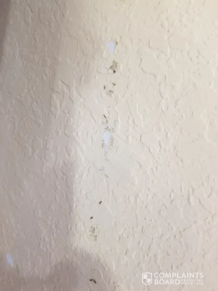 14. Sat down to eat and there were bugs crawling all over the wall I TOOK PICTURES! (attached) l I didn't notice but later saw them all over the table and then crawling all over me had to get up and take my plate and go clear in another room