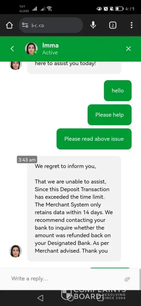 I deposited Php 4,000 (about $80) last December 31st 2023 around 11:31am. It was not credited. I keep reaching out customer service but keeps saying they did mot receive it. Its funny because it was deposited through QR code. I keep reaching out customer service and when its past 14 days they just told me: