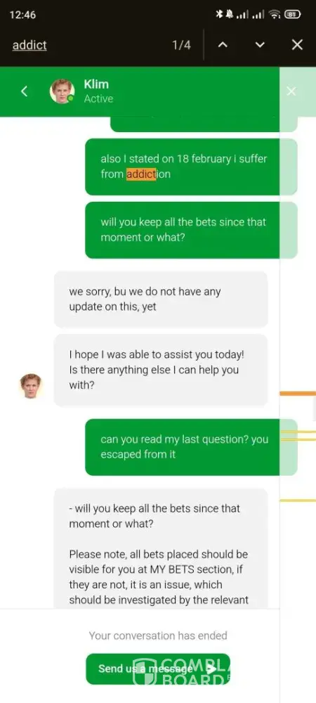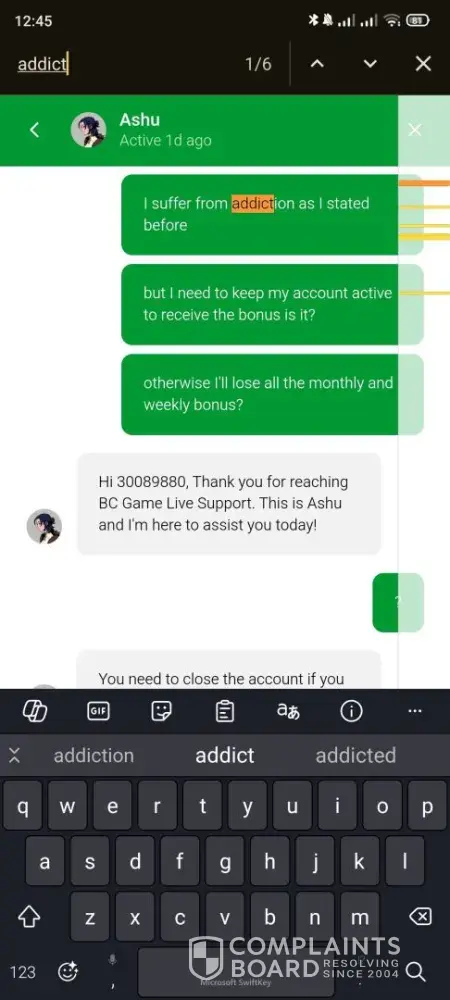 On 24th February I had a running claim on bitcointalk forum against BC.Game, and you can clearly state that one of the mods even requested them to close my account due to gambling addiction.