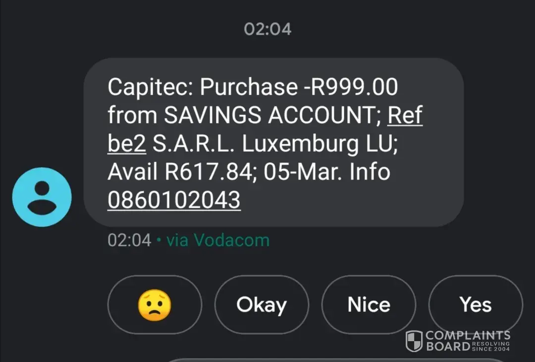 be2 S.A.R.L unauthorized debit charge.