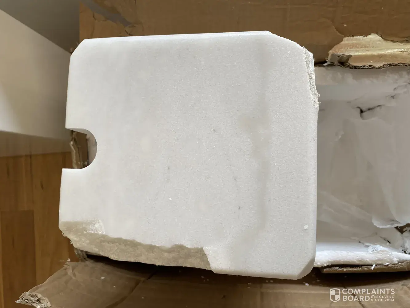 I paid AUD $900 for a lamp with a marble base, long arm and chrome lampshade. This was purchased in July21. The marble base arrived on 24th Sept (3 months later) broken on all edges, as well as with several grooves and marks all over. It was not sufficiently packaged. It weighs over 30kg, and was packaged in a paper-thin box with 1cm of polystyrene. The lamp arm and lamp shade has not arrived.