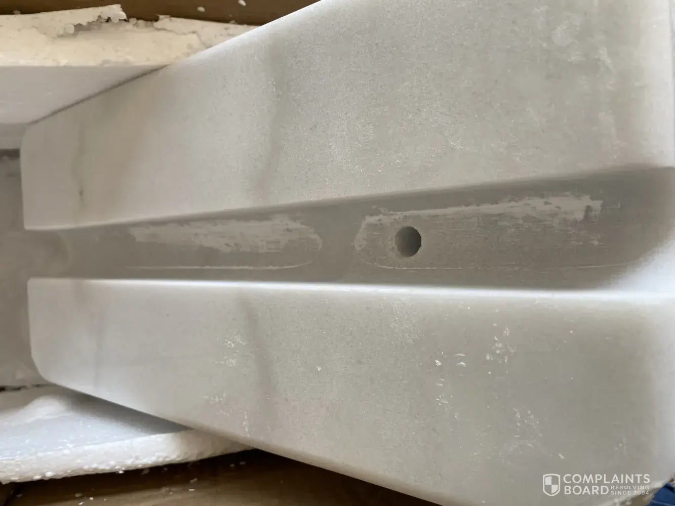 I contacted Beautiful Halo with images of the base, packaging and labels. They have offered to pay me a refund in full, if I return the 30+kg marble base to them at my own expense, and upon inspection by them they will issue the refund minus the original shipping cost too. Preposterous.