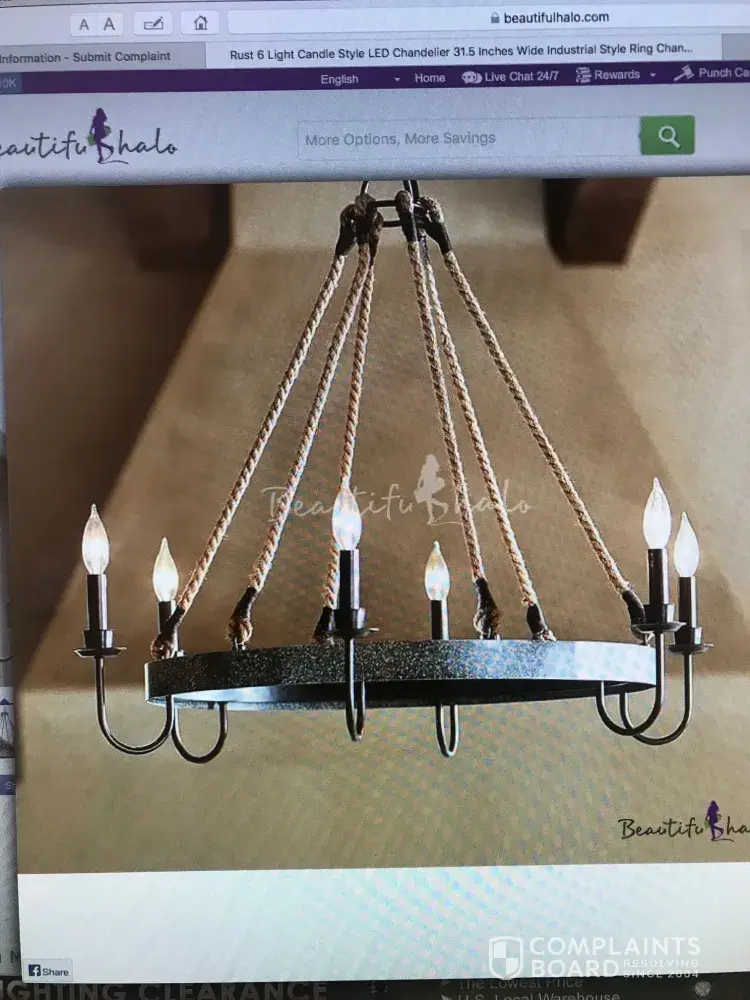 I ordered a chandelier from this company, because they were selling the exact chandelier that I saw on the pottery barn website for a fraction of the cost. Same picture. I figured they sold seconds, and that was why it was so cheap. But the chandelier that arrived was just a cheap knockoff of the one I wanted. The band around the chandelier was just a tube, not a wine-barrel style rustic band. The rope was finished off with duct tape, not wrapped neatly in wire. The chain was less than 2 feet long and was so small that it looked funny holding this big chandelier. One of the lighting arms was bent inward. They posted a return policy on their website, which I checked before ordering the chandelier. They barely respond to emails, and it is obvious that the customer service reps are not fluent in english so communication is difficult. They didn't accept the pictures I sent them and when I resent them in a different format they didn't respond at all.