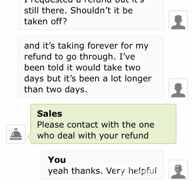 They are also very rude and not helpful at all. For the most part, they always try to send me this copy-paste nonsense basically telling me to go cry to their support email, even though i've already told them i've done that. They just don't want to deal with their customers. Throughout these conversations, i've noticed they also keep leaving the chat and then i'm left with someone brand new every few minutes, and then I have to re-explain everything. This is horrible customer service and this is so ridiculous. I just want my money back.
