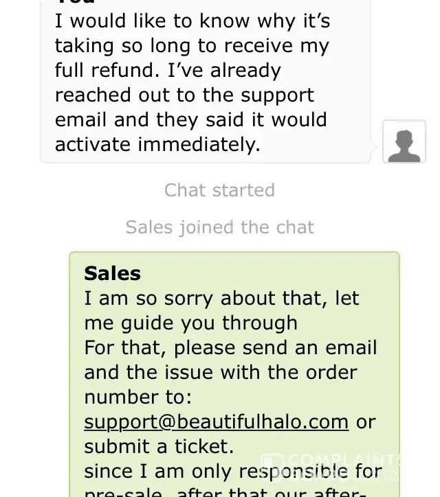 I emailed them immediately asking for a return to be issued to get a refund. They never responded. I contacted them via live chat a week later where they told me that I needed to email as they only dealt with "sales".