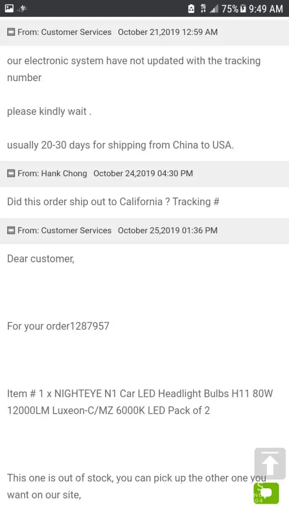The first time I reached out to their customer service chat, they told me it was out of stock, and I would have to wait until march 10th to receive it. Keep in mind, at the time, this would mean I would have to wait over a month to receive it. So, I politely asked for a refund and thus wished to have my order cancelled completely. They told me I would get my money back in two to three days.