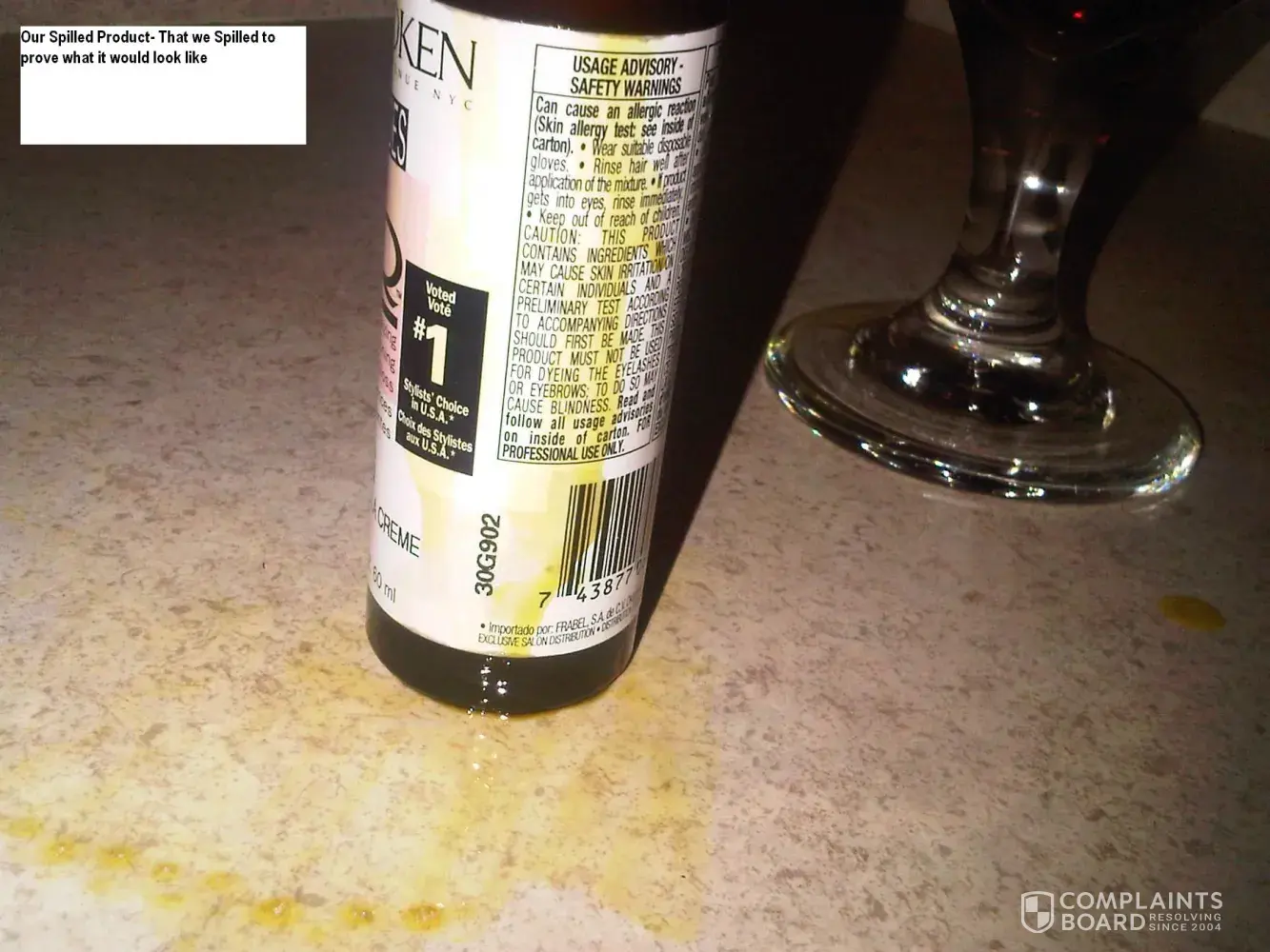 Customer Purchased from our website, tried to claim that the product spilled, with a description that was not possible from the product that was ordered- requested pictures that she sent us that was not even close to what the product would look like if it did indeed spill. We then took the product from our stock spilled it as she claimed it did took...