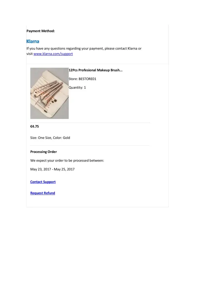Read full complaintKlarna (www.klarna.com) - 12pcs profesional makeup brush set